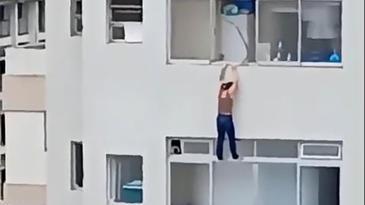 Kayda alınan görüntülerde, kadın, binanın 16. katındaki pencereye tutunmuş şekilde asılı duruyor ve kendini içeri çekmeye çalışıyor. Ancak tüm çabasına rağmen bunu başaramayan kadının yaşadığı çaresizlik, görenleri dehşete düşürdü.