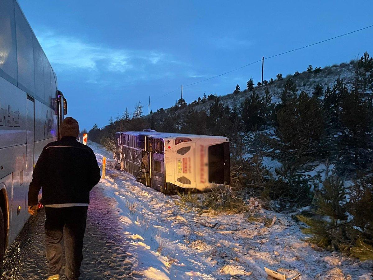 Afyonkarahisar'ın Emirdağ ilçesinde, iddiaya göre yoldaki gizli buzlanma nedeniyle devrilen yolcu otobüsünde 8 kişi yaralandı.