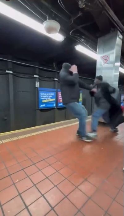 Trenin istasyona yaklaştığı duyulurken, iki adamın platformun kenarından sadece birkaç adım uzakta birbirleriyle tartıştıkları rahatsız edici anlar kaydedildi.