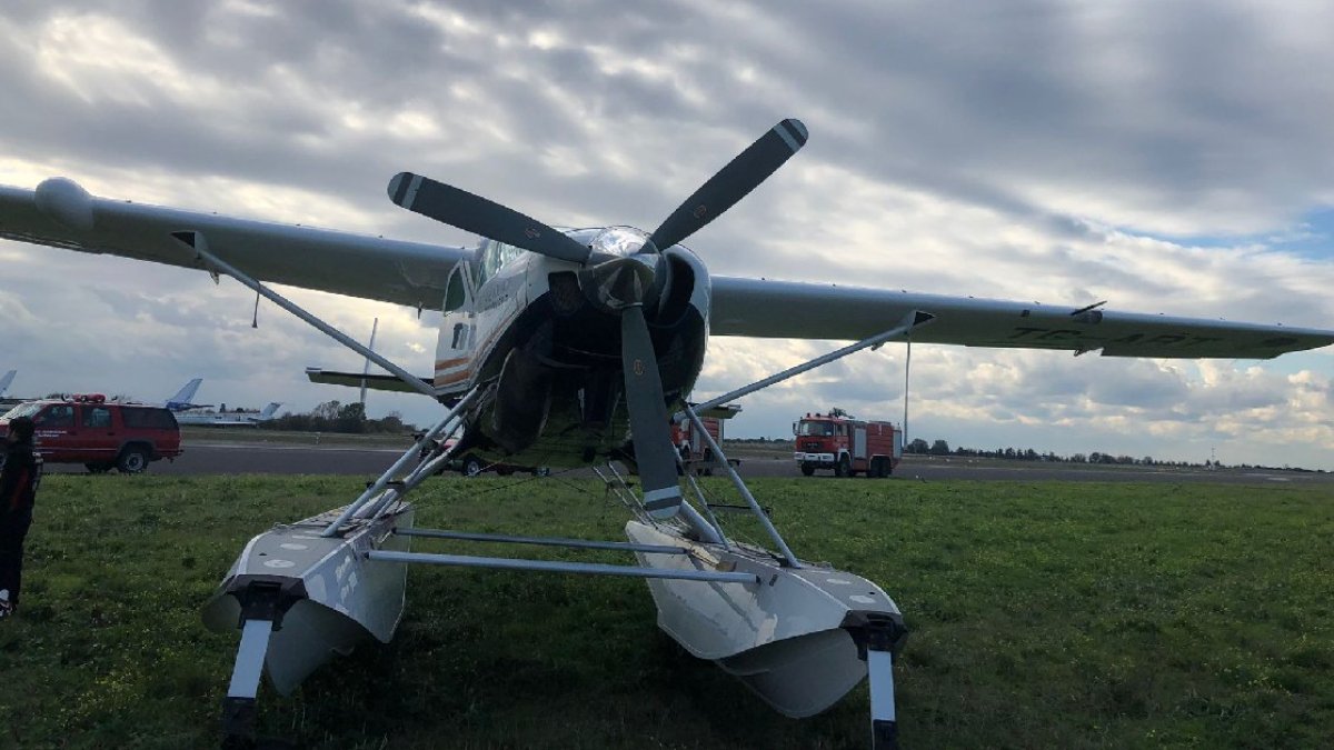 Kaza sonrası uçakta bulunan iki pilot kazayı yara almadan atlatırken, yeşil alana çıkan uçak ekipler tarafından kurtarıldı.