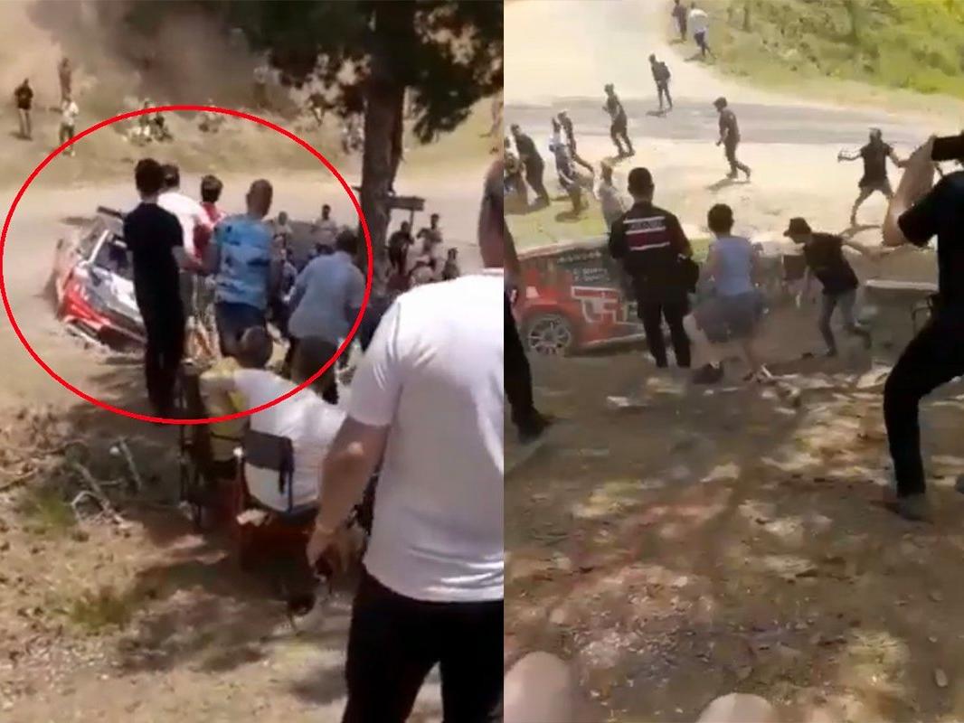 Bursalılar 46. Yeşil Bursa Rallisi izlemek için yarışın yapıldığı Keles yoluna akın etti. Yarış sırasında viraja hızlı giren ralli arabası seyircilerin arasına daldı.
