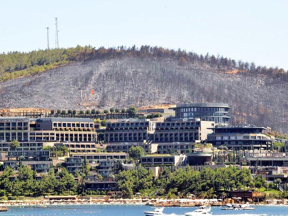 Güvercinlik Pina Yarımadası'nda dün çıkan orman yangınında zarar gören ormanlık alan havadan görüntülendi. Yanan alanların büyük kısmının, bölgedeki turistik tesislerin etrafında bulunan denize sıfır konumdaki ormanlık alanlar olması dikkat çekti.