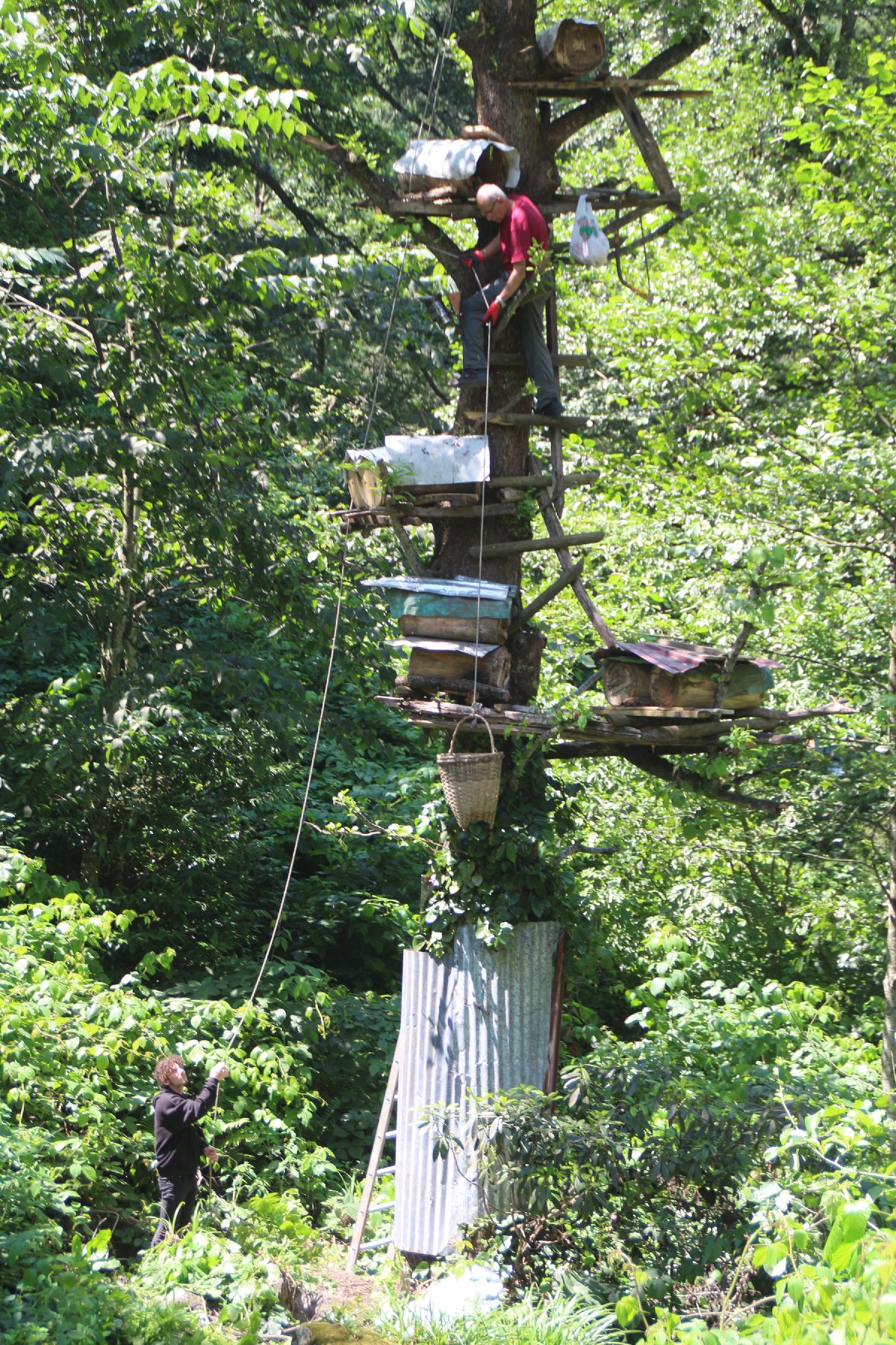 Rize'de kara kovan bal yetiştiriciliği geleneği sürdürülüyor. İçleri oyularak bir arının girebileceği boşluk bırakılan kütükler, üreticiler tarafından ormanlarda boyu 40 metreyi aşan ağaç dallarına yerleştiriliyor. 6 ay müdahale edilmeyen kovanlar, ağustos ayının ilk haftası da sağılmaya başlanıyor.