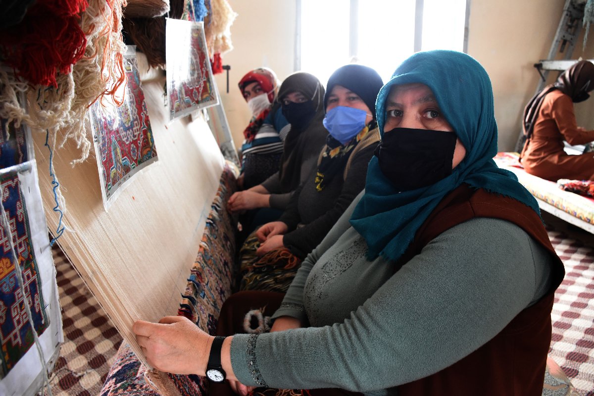 Kadınlar, İŞKUR'un sigorta ve maaş desteğinden de yararlanıyor. Kadınların köyde dokuduğu halı ve kilimler Malatya'daki işletmeye gönderiliyor.
