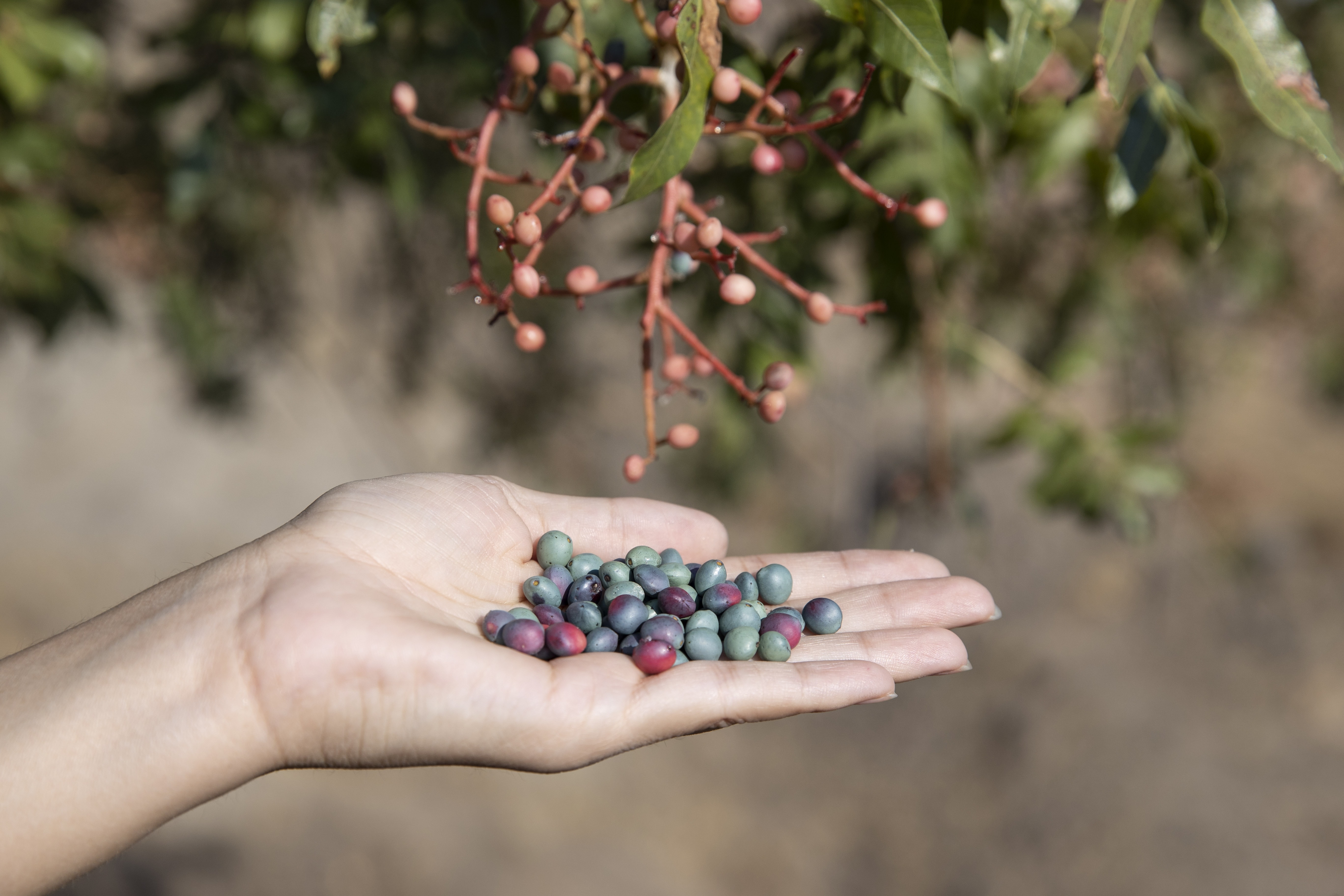 Bazı komşularının çedene ağaçlarını aşılayarak çam fıstığına çevirdiğini ifade eden Irmak, "Çedeneler yazın kırmızıyken sonbaharda olgunlaşıp yeşil oluyor. Çedeneleri sıkot dediğimiz taşla öğüterek kilogramını 300-400 liraya satıyoruz." dedi.