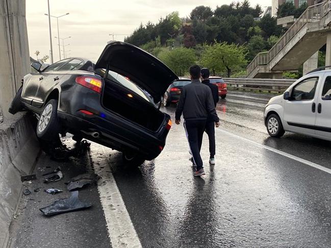 Çarpmanın etkisiyle ters istikamete dönen panelvan minibüs bariyerlere çarparak durabildi. Kazayı geç fark edip ani fren yapan 34 DJZ 464 plakalı otomobil sürücüsü, direksiyon hakimiyetini kaybederek beton bariyerlerin üzerine çıktı.
