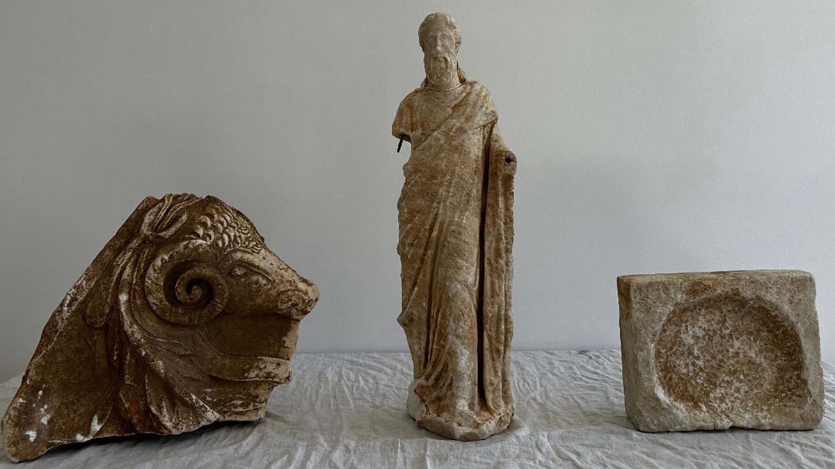 Cumhuriyet Başsavcılığı koordinesinde şüphelinin evine akşam saatlerinde düzenlenen operasyonda, Kral Hekatomnos'un 2 bin 500 yıllık mermer heykeli, sunak taşı ve Roma dönemine ait koç başı ele geçirildi.