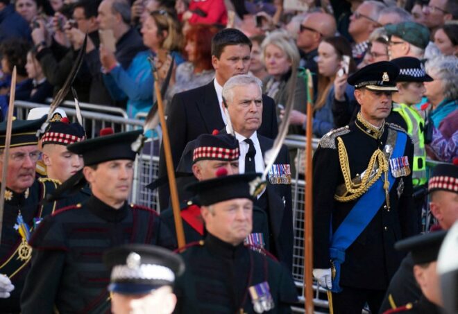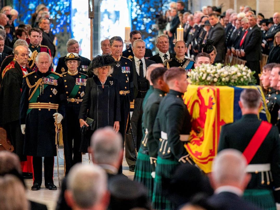 İskoçya’daki Balmoral Kalesi’nde geçen hafta hayatını kaybeden Kraliçe için dün Edinburgh’da tören düzenlendi. Binlerce kişinin katıldığı törende kentin sokaklarında taşınan Kraliçe’nin tabutunu Kral 3. Charles ve kardeşleri Prens Andrew, Prenses Anne ve Prens Edward takip etti.