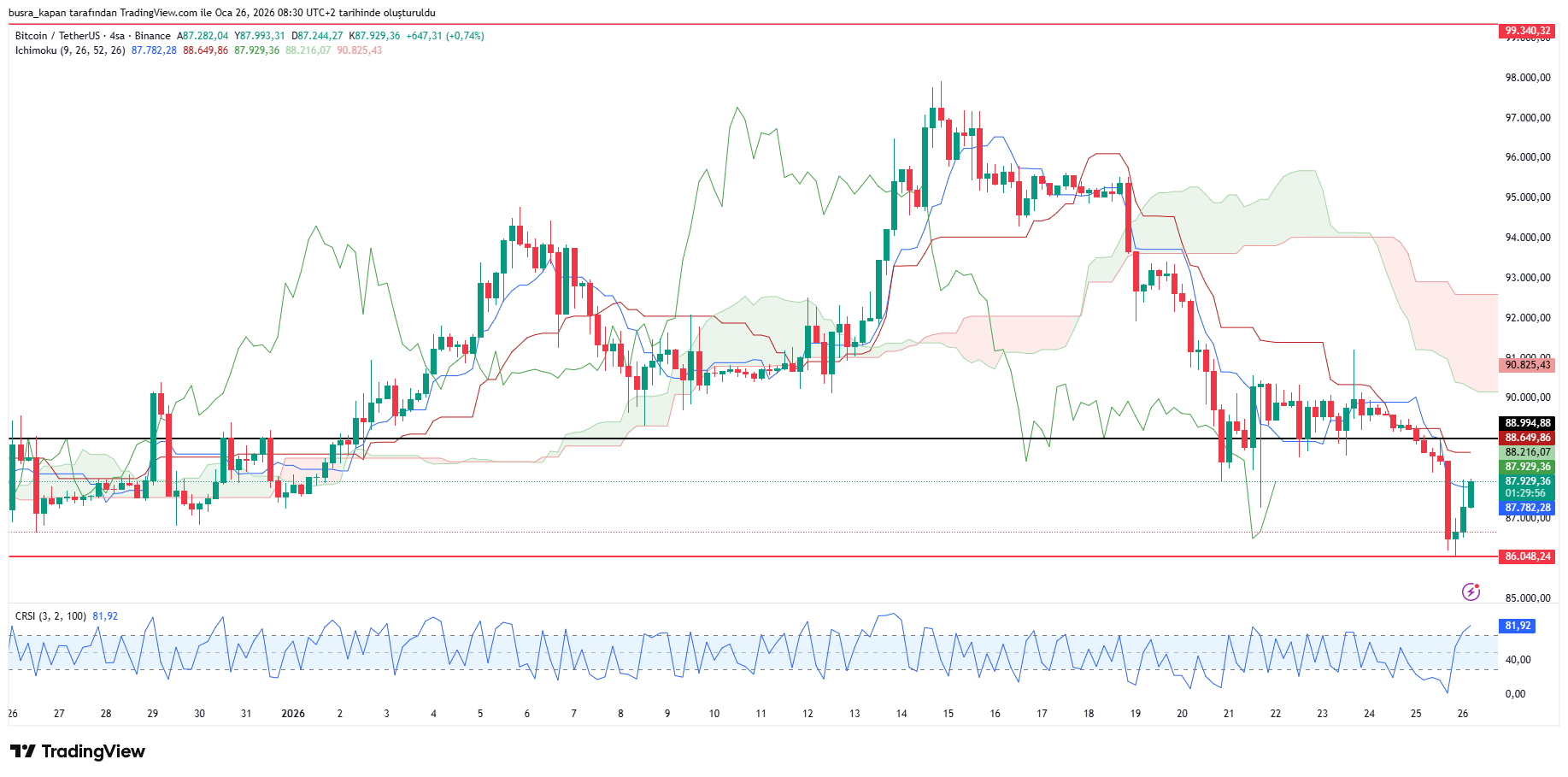 Lider kripto para birimi Bitcoin, bugün 86,48 dolara geriledi. Bugün sabah seansında 09.29'da 87 bin 929 dolarda bulunuyor.