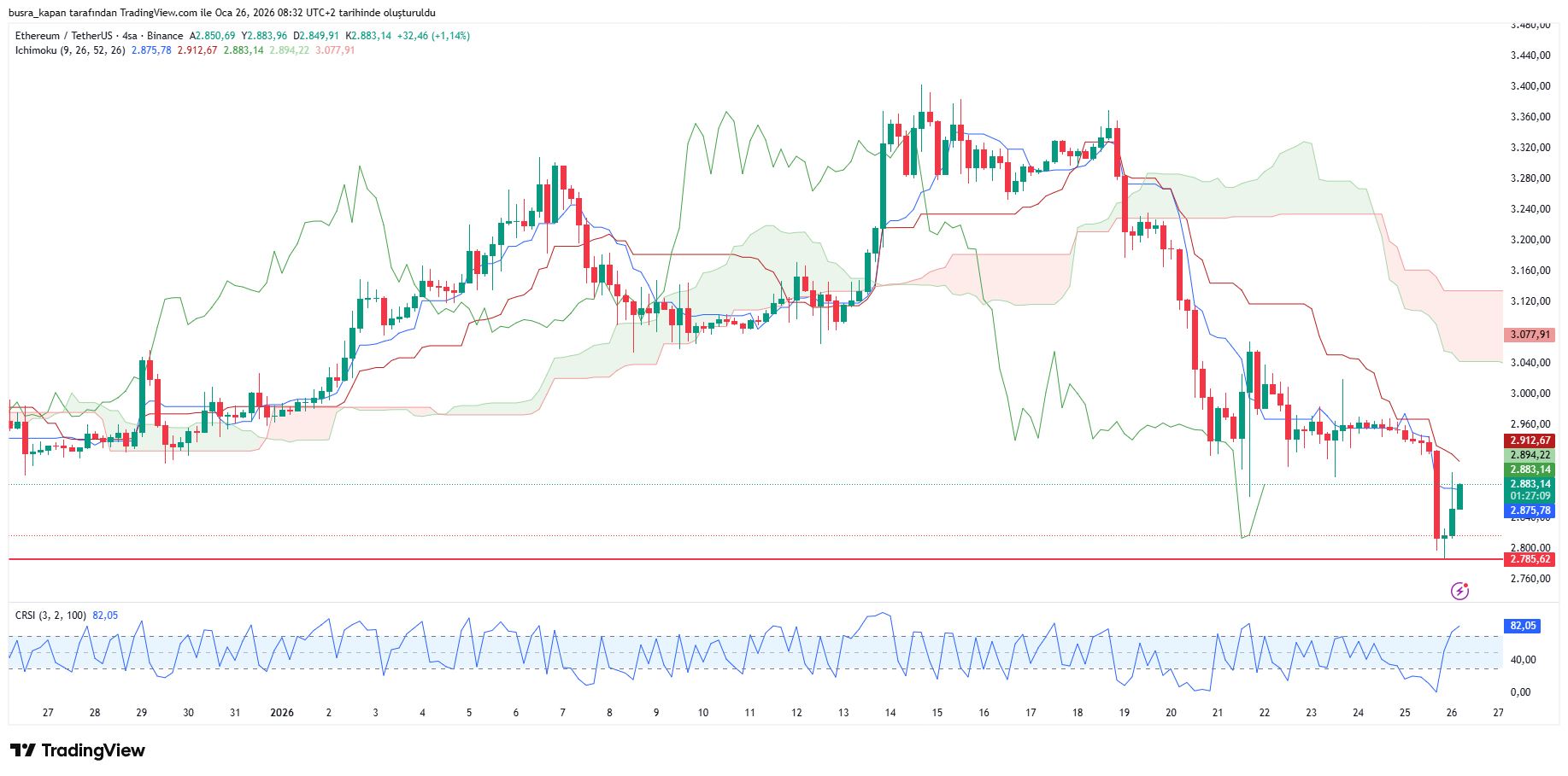 Bitcoin'de görülen düşüşlerin etkisiyle, altcoinlerde de aşağı yönlü eğilimlerin olduğu görülüyor. Ethereum, bugün 2 bin 785 dolara geriledi. Bugün sabah seansında 09.29'da 2 bin 883 dolarda bulunuyor.