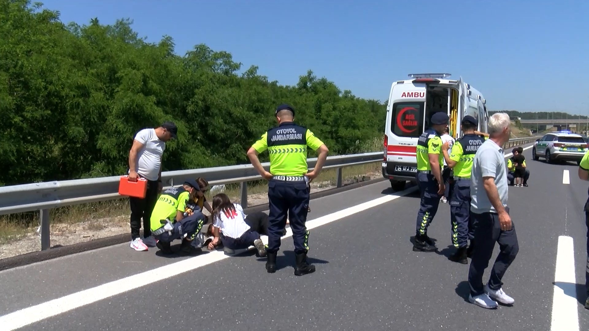 Kazayı görenler 112 Acil Çağrı merkezini arayarak haber verdi. İhbar üzerine olay yerine jandarma ve sağlık ekibi sevk edildi. Kazada yaralanan otomobil sürücüsü çevredekiler tarafından otomobilden çıkarılarak emniyet şeridine alındı.