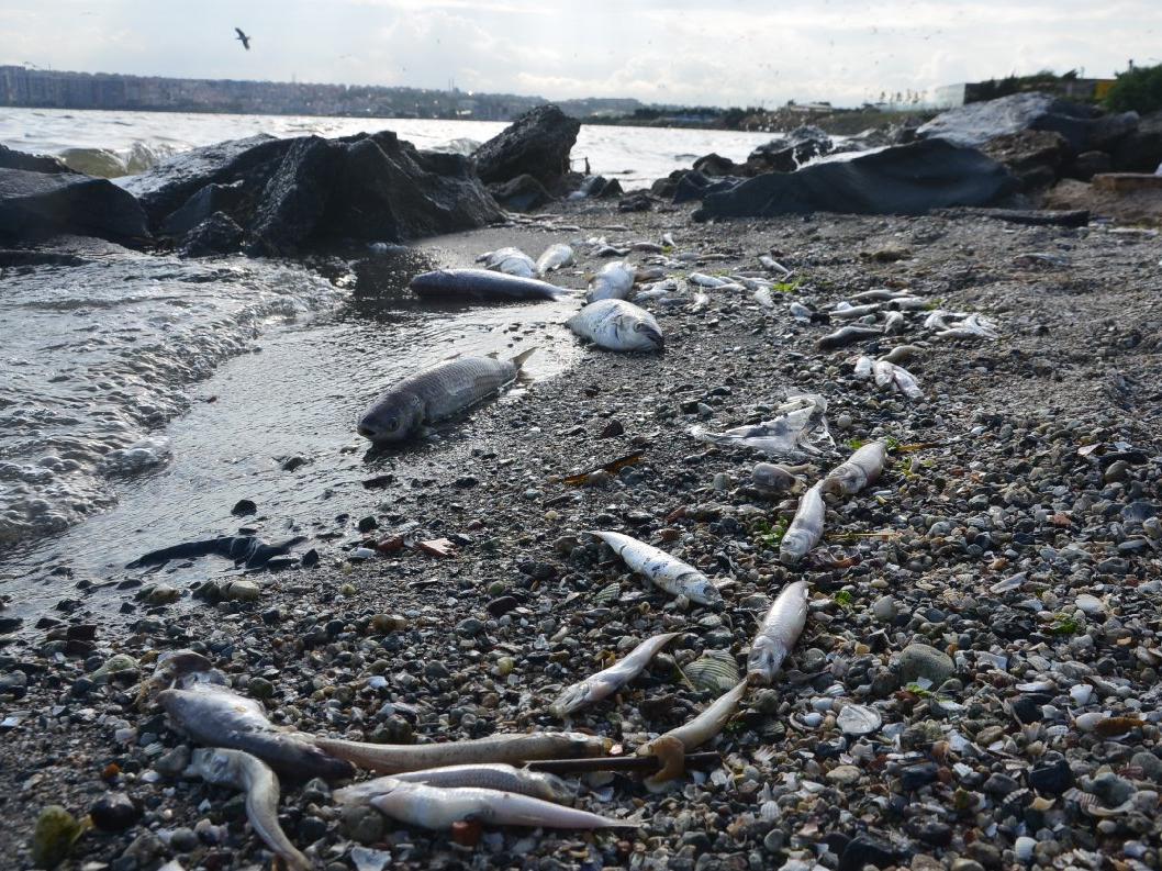 Gölün sahilden 100 metre açığa kadar kahverengi, ilerisinin ise mavi renkte olduğu dikkat çekiyor. Sahilde kıyıya vuran balıkların yanı sıra çok miktarda çöp de göze batıyor. .