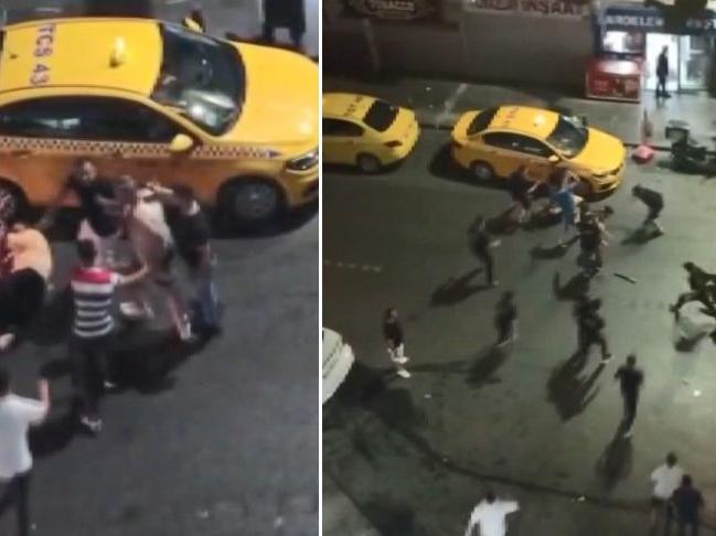 Daha sonra gruptaki 3 kişinin kaçmasıyla kafede tek kalan kişiyi çalışanlar dakikalarca tekme tokat dövdü. İhbar üzerine gelen polis ekipleri kavgayı ayırdı. O anlar cep telefonu kamerasıyla kaydedildi.