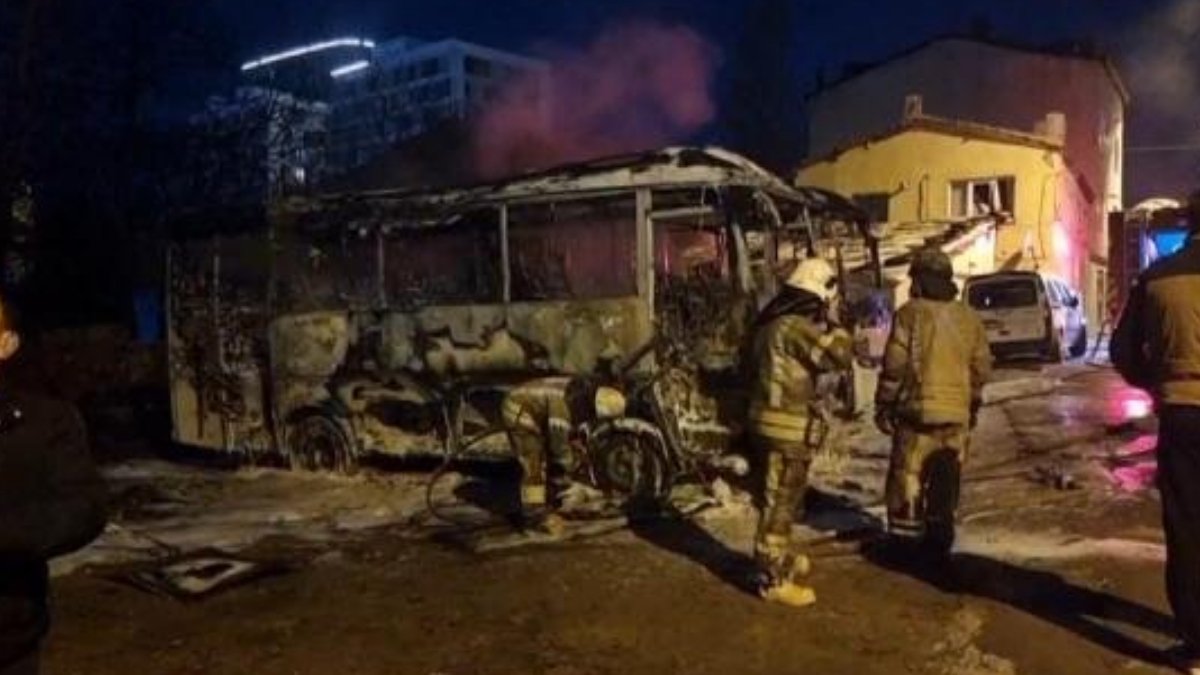 Küçükçekmece’de park halindeki 2 minibüs yandı