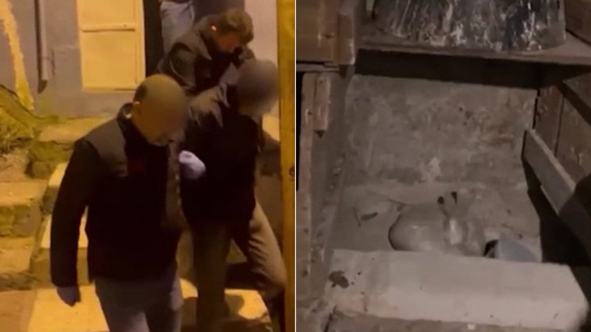 Polis kamerasına yansıyan operasyon görüntülerinde, ekiplerin koçbaşı ile eve girmeleri, evde ve müştemilatta arama yapılması, kümesteki gizli bölmede tabanca ve uyuşturucu maddelerin bulunması yer alıyor.