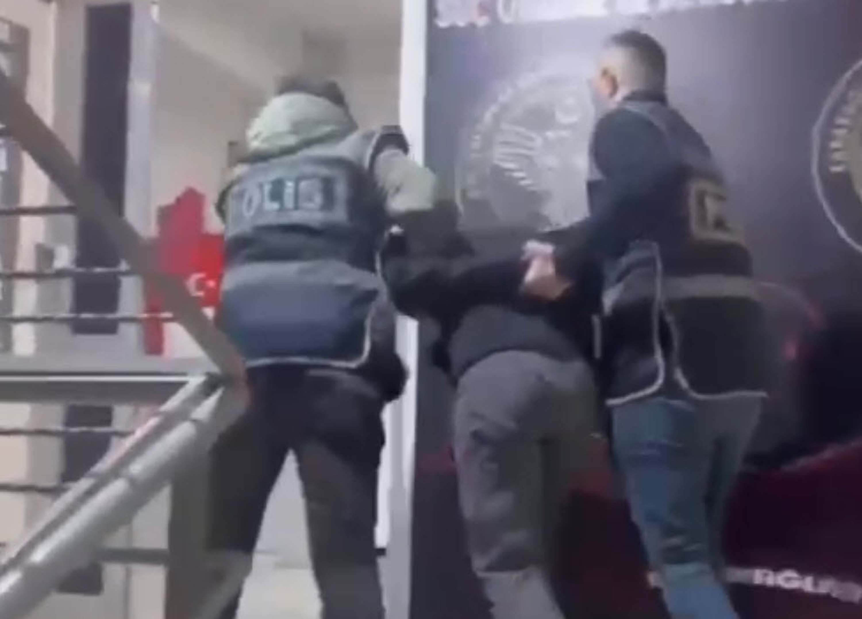 Gözaltına alınan E.A., işlemlerinin yapılması amacıyla Eskiizmir Polis Merkezi Amirliği’ne götürüldü.