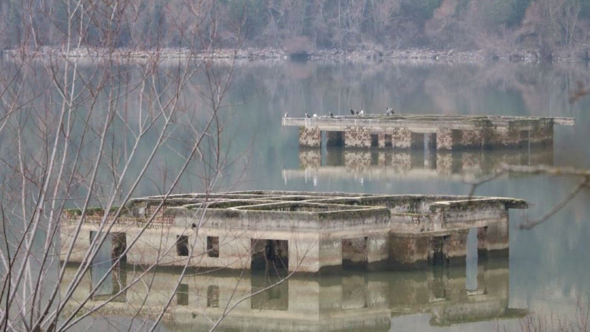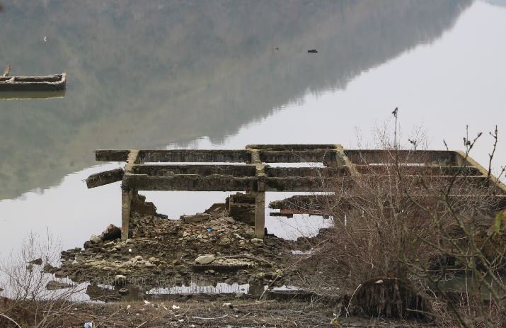 Zonguldak'ın Ereğli ilçesinde, 36 milyon metreküp kapasiteli Kızılcapınar Barajı'nda kuraklık nedeniyle su seviyesi düşünce Ovaköy'de su altında kalan 49 evden bazıları ortaya çıktı.