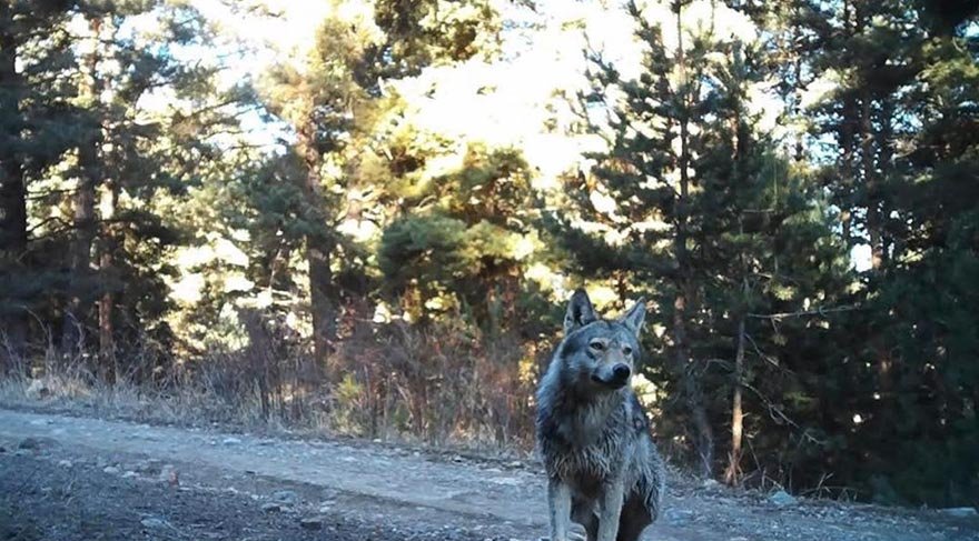 Görüntülere göre, ormanda dolaşan kurt, fotokapanı fark ederken, bir süre inceledikten sonra uzaklaştı. Kurt, daha sonra ağzında yakaladığı av ile görüntüleniyor. DHA