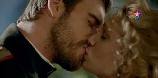 Dizide birbirlerine aşık olan Kurt Seyit ile Şura'nın aşk dolu öpüşmesi geceye damga vurdu.