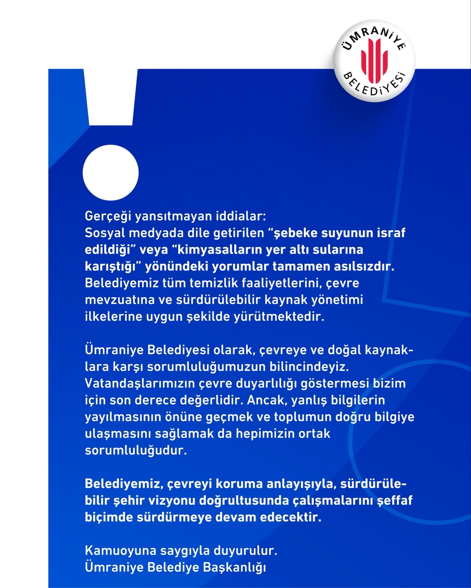 Videonun sosyal medyada yayılmasının ardından Ümraniye Belediyesi'nden açıklama yapıldı. Yapılan açıklamada şu ifadeler kullanıldı: