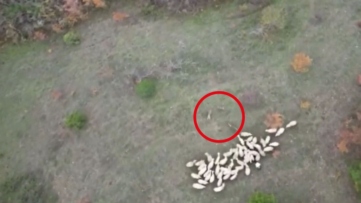 Dronla koyunların olduğu alanı belirleyen Zafer Ş, görüntülerde kurtların hayvanlara saldırdığını fark etti.