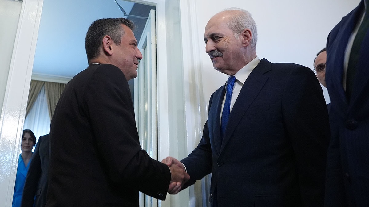 Yeni anayasa çalışmaları kapsamında ilk görüşmeyi dün CHP Genel Başkanı Özgür Özel'le yapan TBMM Başkanı Numan Kurtulmuş, Mecliste grubu bulunan siyasi partilere ziyaretlerini sürdürüyor.