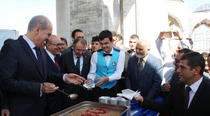 Akademik yılı açılışının ardından MAKÜ İstiklâl Yerleşkesinde yapılan caminin açılışını da yapan Numan Kurtulmuş, caminin yapımına katkıda bulunanlara plaket verdi, vatandaşlara aşure dağıttı.