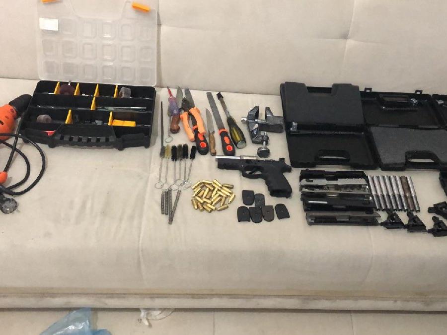 Şüpheli Abuzer Burak A. gözaltına alındı. Aramaların devamında, şüphelinin otomobilinin ön kaputu açıldı. Motor bölümünün yanında bir poşet bulan ekipler, namlusu sökülmüş 6 tabanca, 8 yiv setli ağzı açık namlu, 39 fişek, 5 horoz tertibatı ele geçirdi.