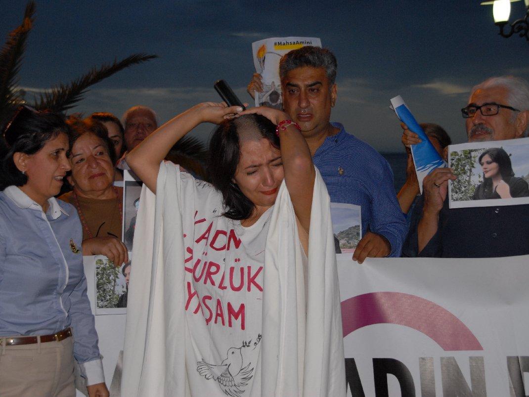 Kuşadası’nda yaşayan İranlı bir kadın ise önce saçlarını makasla kesti. Ardından “Erkekler saçlarını kazıtıyorsa, kadınlar da kazıtır. Kadın erkek eşittir” diyerek saçlarını makine ile tıraş etti. Oldukça duygulu anların yaşanırken, bir çok kadın gözyaşlarını tutamadı.