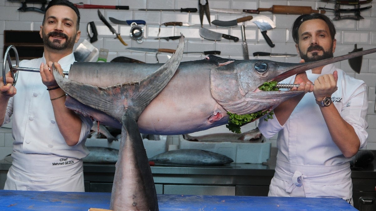 Ankara'da 25 yıldır restorancılık yapan Faruk ve Mehmet Gezen kardeşler menülerine 'çılgın' olarak niteledikleri bir balık ekledi. 75 kilogramlık kılıç balığından cağ kebabı yapan kardeşler, deniz ürünlerinden farklı inovasyonlar ortaya çıkarmayı hedeflediklerini söyledi.