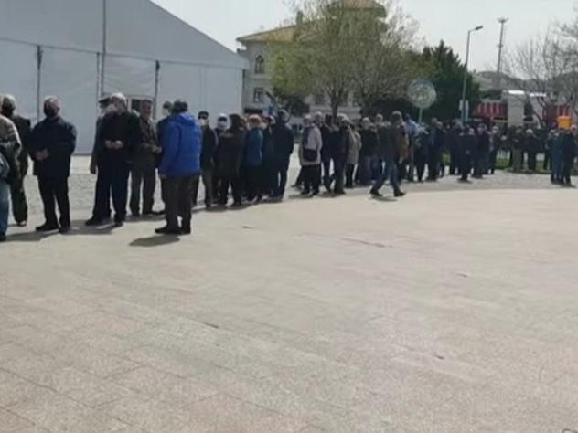 Bandırma'da Fırıntaş'ın ucuz ekmek büfesi önünde vatandaşlar, 300 gram Ramazan pidesini 2,5 liradan alabilmek için saatlerce kuyrukta bekledi. Sıranın eksilmediği kuyrukta bekleyen yaşlılar ayakta durmakta zorluk çekti.