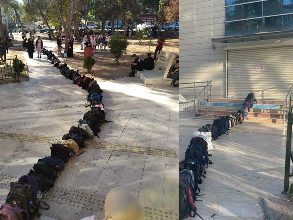 Kuyrukta beklemekten yorulan üniversite ve memurluk sınavlarına girecek adaylar çare olarak kendileri değil, çantalarını sıraya sokmakta buldu.