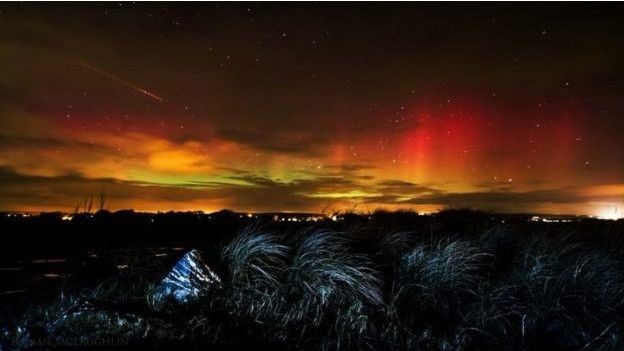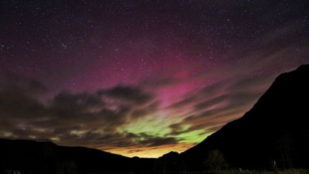 Yeşil, pembe, mor, kırmızı ve sarı ışıkların dansı saatlerce sürdü.BBC