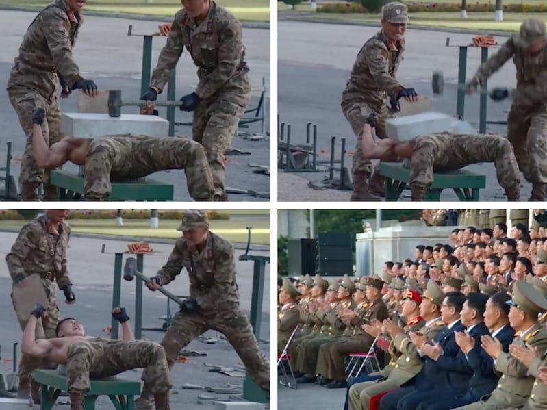 Kuzey Kore ordusundaki gelişmeleri yakından takip eden Devlet Başkanı Kim Jong-un ve üst düzey askeri yetkililer, gösteriyi yakından takip etti. Kuzey Kore analisti Martyn Williams'ın sosyal medyada paylaştığı görüntülerde askerler, tuğla ve betonları yumruklarla parçalıyor, cam ve bıçakların üstüne yatıyor, akrobatik dövüş hareketleri sergiliyor.