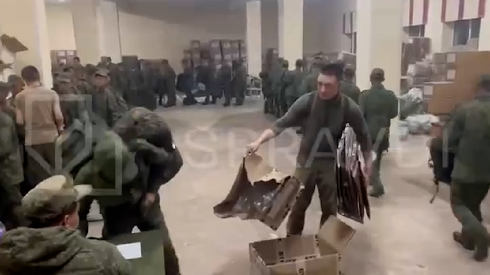 Bir Rus askeri deposundan çekildiği iddia edilen görüntülerde, Kuzey Koreli olduğu iddia edilen bir çok askerin ekipman teslimatı aldığı görülüyor.