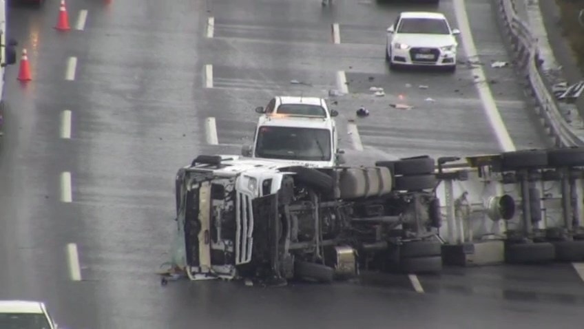 Beykoz Kuzey Marmara Otoyolu’nda seyir halindeki bir TIR devrildi. İhbar üzerine olay yerine polis, itfaiye ve sağlık ekipleri sevk edildi.