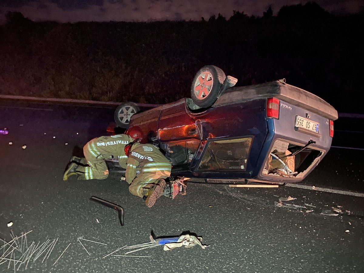 Kuzey Marmara Otoyolu’nda feci kaza: Takla attı, metrelerce sürüklendi