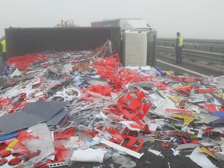 Kontrolden çıkan kamyon yola devrildi. Kamyon kasasındaki plastik atıklar yola saçıldı. Arkadan gelen Scania marka 1 tır, 2 kamyon 1 otomobil ve 1 çekici sürücüsü de devrilen kamyona çarpmamak için manevra yapınca birbirleri ile çarpıştı. Toplamda 6 aracın karıştığı zincirleme kazada Abdullah Ediz, 34 BB 0978 plakalı araç sürücüsü Kemal Köse, 34 DC 4720 plakalı araç sürücüsü Salih Yılmaz yaralandı.
