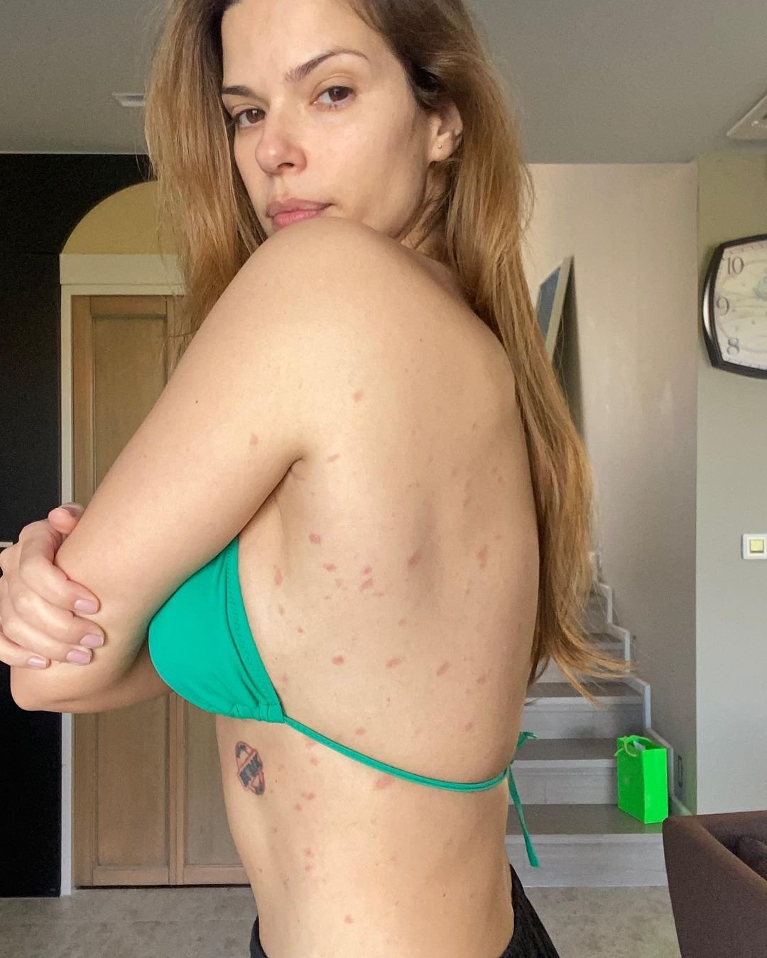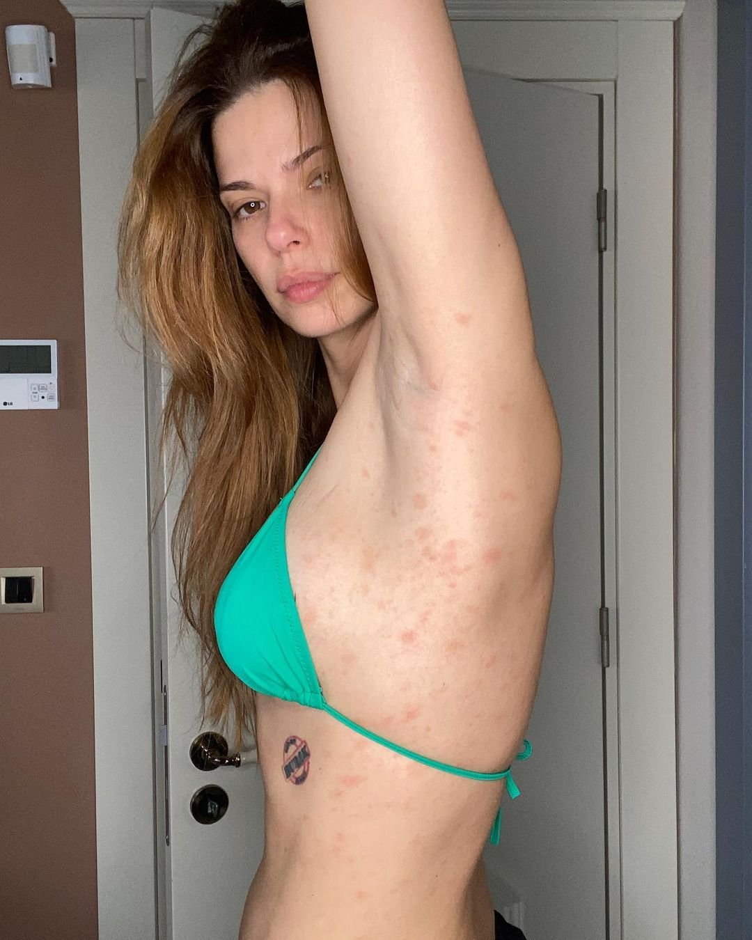 "Doktor direkt gül hastalığı olarak teşhis koydu, bu stresten dolayı oluyor. Kaşınmıyor, sadece bazen sanki batıyor gibi terleyince. O yüzden spora da biraz ara verdim. Bu bulaşan bir hastalık değil. Çocuklarda çok oluyormuş duyunca üzüldüm onlar için sizinle paylaşmak istedim."