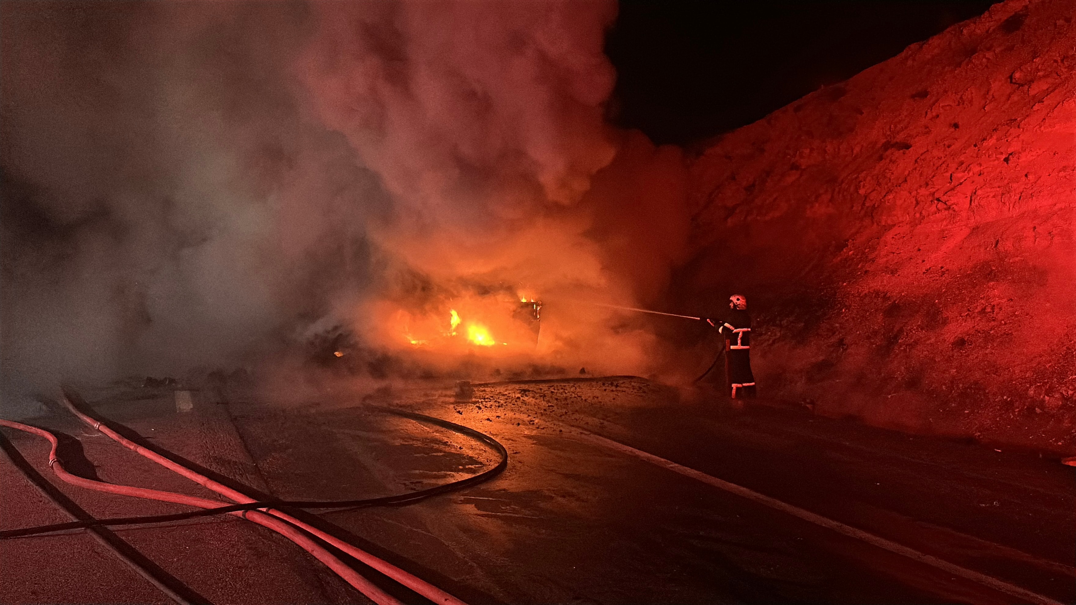 Şoför Ferdi Gürpınar, yangının başladığı anı şu şekilde aktardı: “İleride lastik patladı. Yangını söndürmek için durdum, su döktüm, yangın tüpüyle müdahale ettim. Araç bir anda alev aldı, sonra da çekiciyi ayırarak dışarı çıktım. TIR’da iplik vardı.”