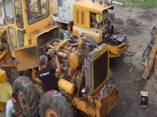Öte yandan, iş makinesi lastiğinin patlaması ve A.A'nın yaralanması iş yerindeki güvenlik kamerasınca kaydedildi. (AA)