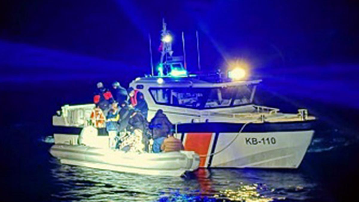 Muğla’nın Bodrum ilçesine bağlı Akyarlar Mahallesi yakınlarından bindikleri 5 metrelik lastik bot ile Yunanistan adalarına geçmeye çalışan 5’i çocuk 19 göçmen ile bir göçmen kaçakçısı şüphelisinin bulunduğu ihbarı üzerine görevlendirilen Sahil Güvenlik Gemisi (TCSG-101) ve Sahil Güvenlik Botu (KB-110) tarafından hareketli fiber karinalı lastik bot durduruldu.