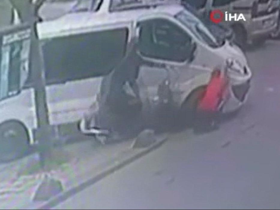 Esenler’de bir sürücü, aracının lastiğini değiştirmek istedi. Bu sırada motosikleti ile kaldırımdan inmeye çalışan bir şahıs, gidon hakimiyetini kaybederek lastik değiştiren sürücüye çarptı. Çarpmanın etkisiyle ikili yola savruldu. Kazayı şans eseri iki şahıs da hafif atlatırken yaşanan bu ilginç anlar saniye saniye kameralara yansıdı. (İHA)