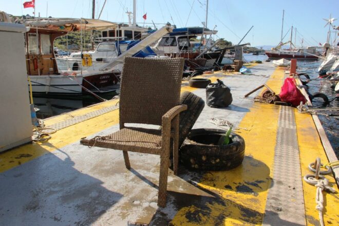 1 ton çöp ve atık malzeme çıkarılan deniz dibinden 20 adet şezlong çıkarıldı. Şezlongları gören belediye ekipleri şaşkınlıklarını gizleyemedi. Denizin dibinden çıkarılan şezlongların kim tarafından atıldığı nasıl limana kadar geldiği ise bilinmiyor.