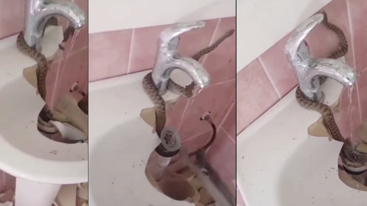 Yılanı borudan çıkaramayan Kelleci, lavabosunu çekiçle kırdı. Kelleci, kırdığı lavaboda boruya sıkışan yılanı bulunduğu yerden çıkararak doğaya bıraktı.