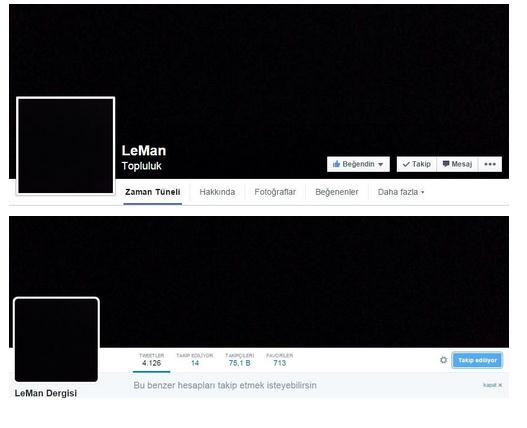LeMan'ın 108 bin kişinin beğendiği Facebook sayfasını ve 71 bin kişinin takip ettiği Twitter hesaplarını kararttığı görüldü.