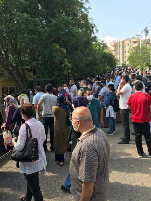 Ancak sınav yapılan okulların önünden gelen görüntülerde yoğun kalabalıkların oluştuğu ve sosyal mesafenin ihmal edildiği görüldü.
