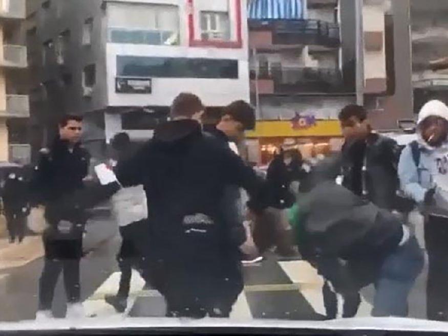 Denizli'de 5 lise öğrencisinin, caddede yere yatırdıkları 14 yaşındaki Y.K.'yi tekme ve yumrukla dövdüğü anlar, cep telefonu ile görüntülendi. Görüntülerde, bir kadının yerde yatan genci kurtarmaya çalıştığı görüldü.