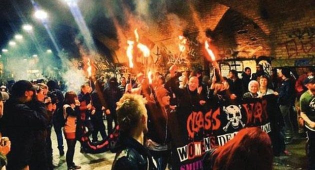 Class War isimli anarşist grup, yaptıkları yürüyüşün anti-kapitalist bir eylem olduğunu açıkladı.
