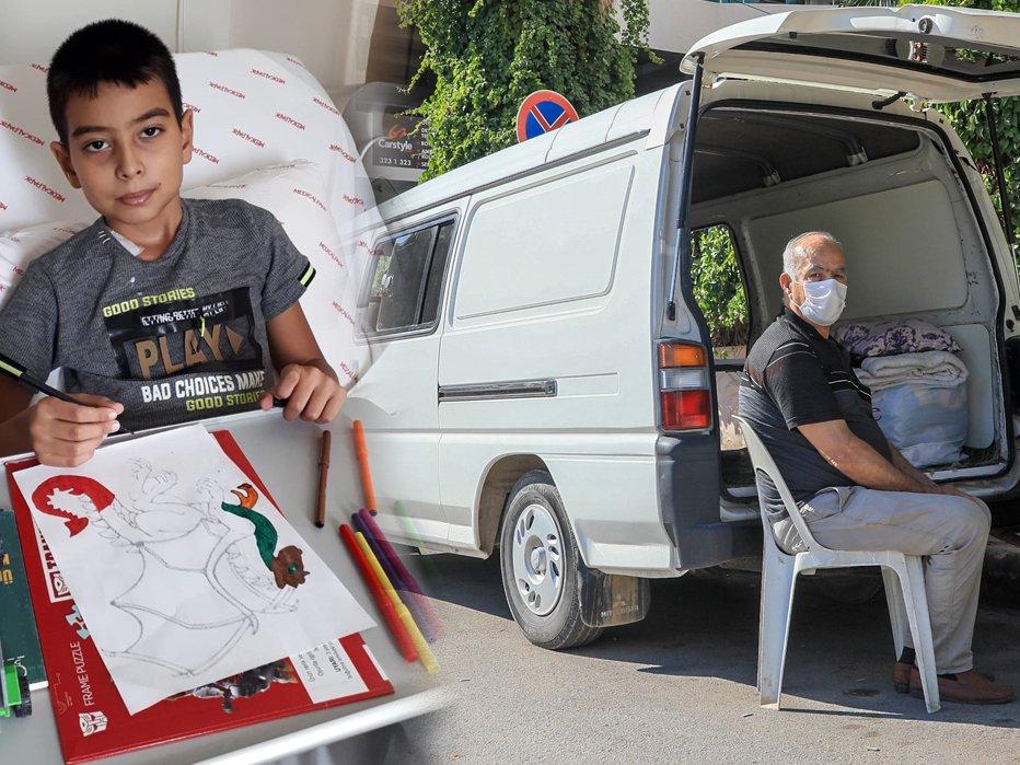* Oğlum hastane odasında, ben de minibüste yaşıyorum. Marketten aldığım hazır gıdaları yiyorum. Çay demliyorum, patates ve yumurta haşlıyorum. Burada yaşamaya çalışıyorum.